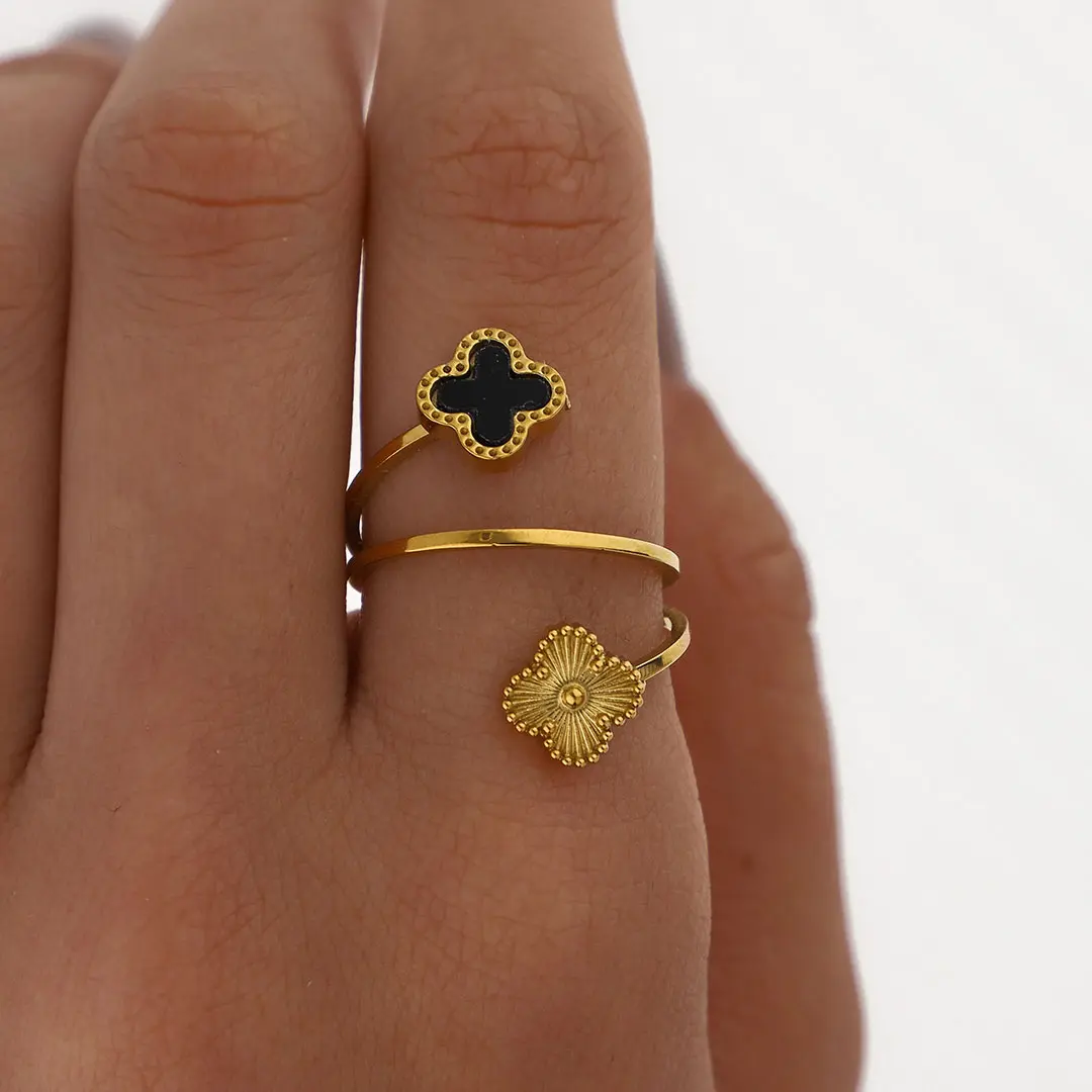 ANILLO TREBOL ACERO DORADO