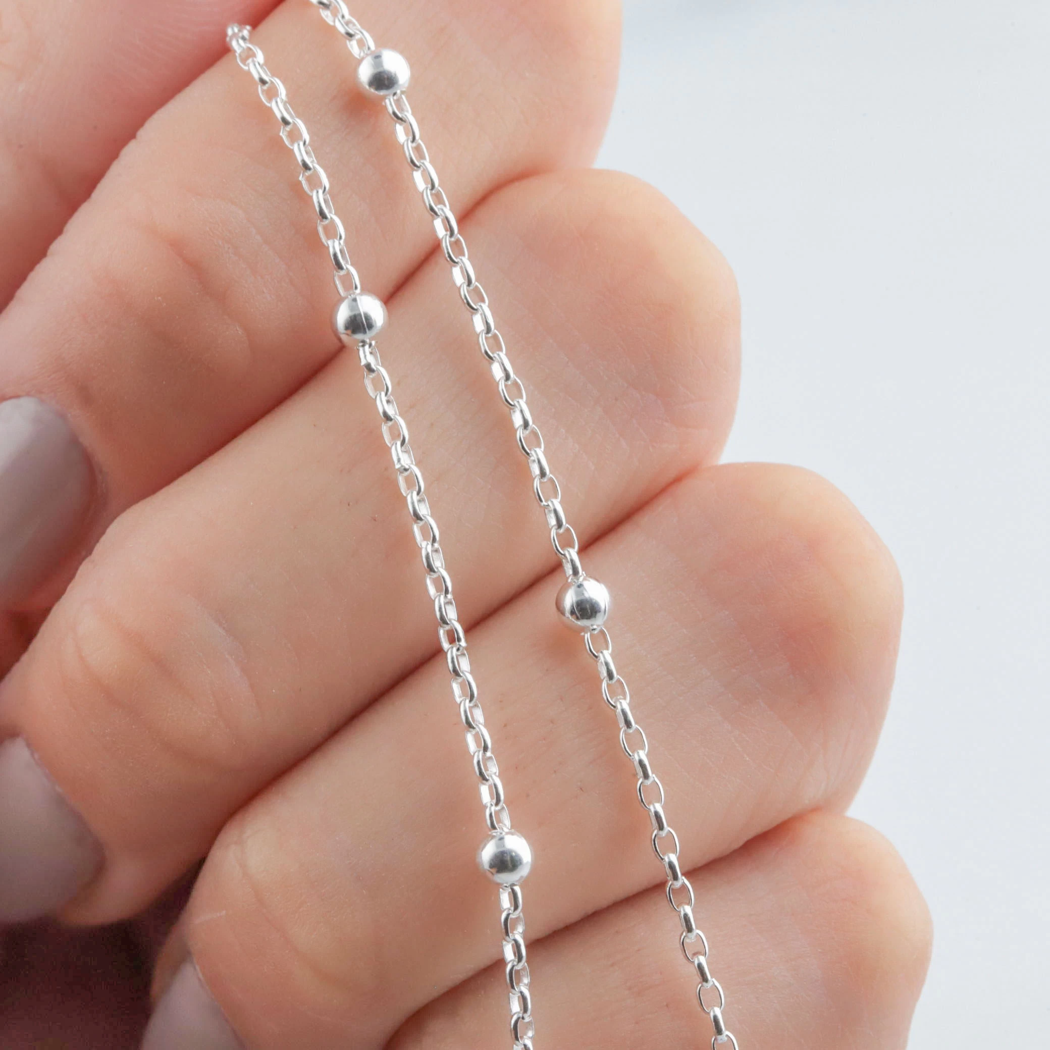 Esta cadena de plata cautiva con su elegancia atemporal. Sus eslabones pulidos y suaves reflejan la luz de manera sutil, añadiendo un toque de sofisticación a tu estilo.