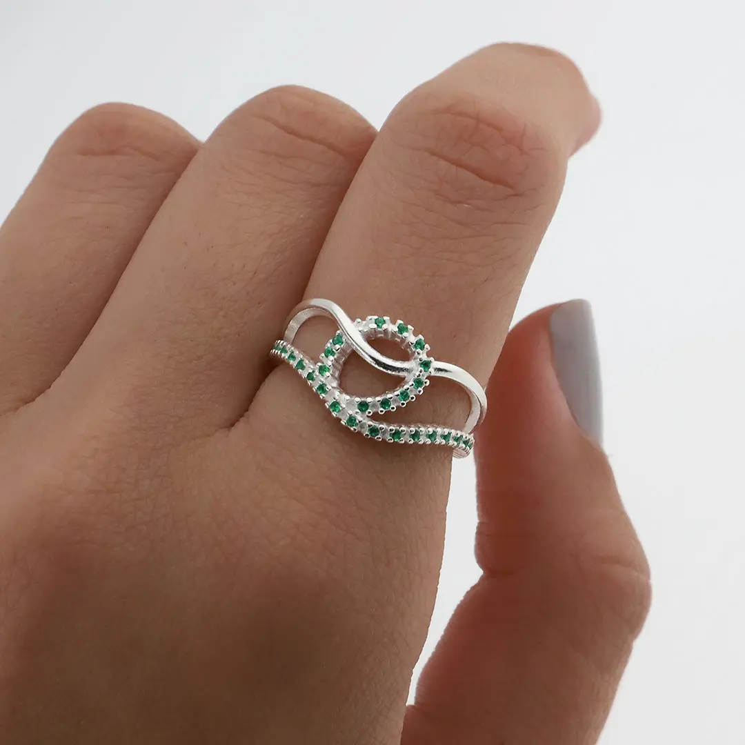 Un anillo de plata que encarna la delicadeza y el encanto. Fabricado con plata de alta calidad, su brillo cautivador te envuelve con un destello elegante. Su diseño único y fluido evoca una sensación de belleza atemporal. Un complemento perfecto para realzar tu estilo con un toque de distinción.