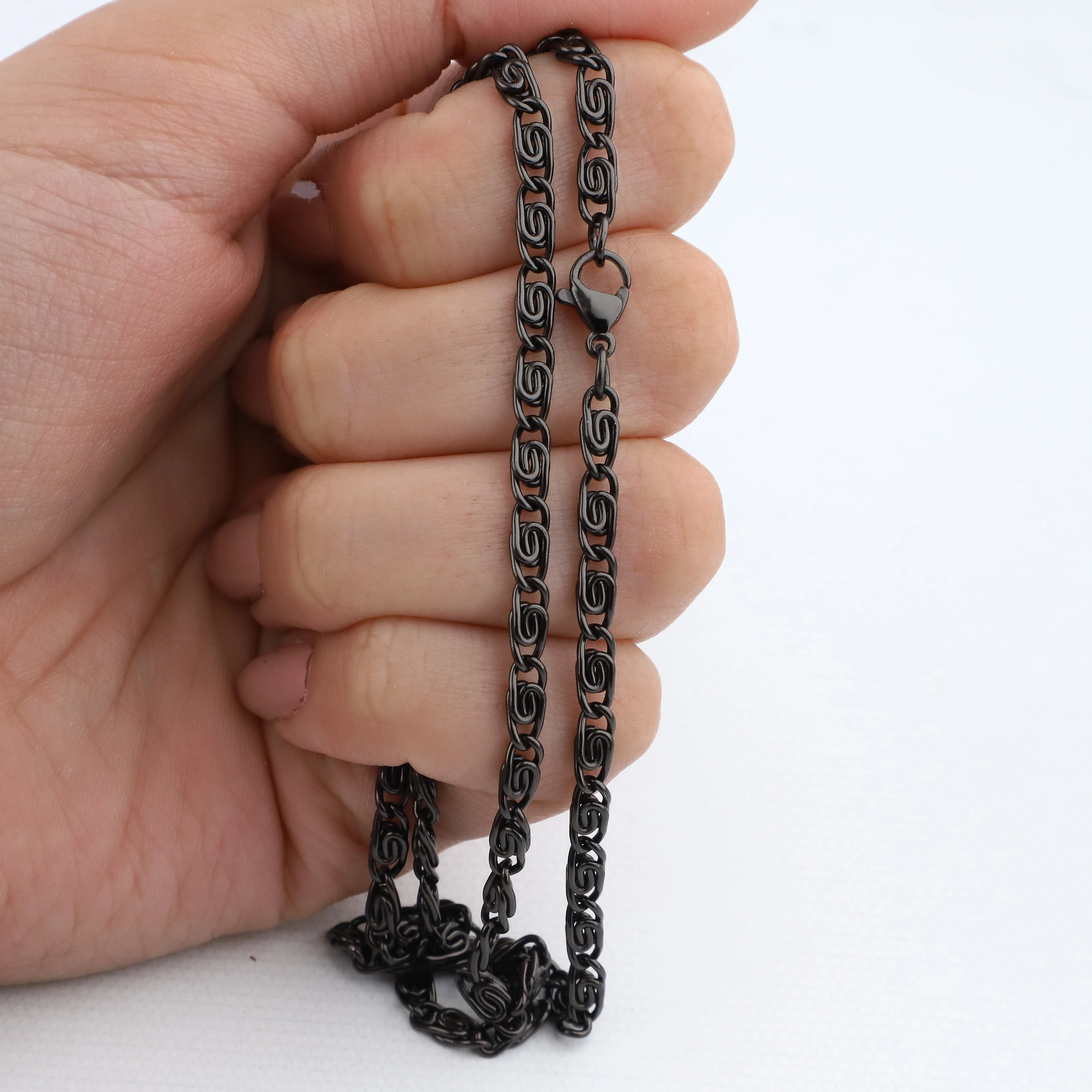 Cadena de Acero Negro. Resistente y Sofisticado. Elegancia y durabilidad en una sola pieza. Nuestras cadenas de acero son hipoalergénicos, anticorrosivos y mantienen su brillo con el tiempo. Ideales para negocios que buscan calidad y estilo al mejor precio